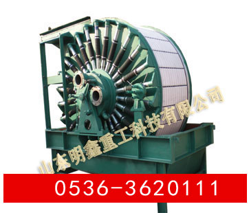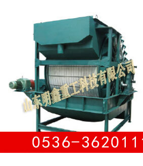 GZC真空永磁過濾機為上部給料的筒型外濾式真空永磁過濾機,主要適用于對較粗顆粒強磁性物料的脫水。 筒體內(nèi)部裝有鍶鐵氧體****磁系,可促使磁性顆粒迅速吸附到濾布表面,磁濾機主要用于粒度較粗的強磁性礦物精礦礦漿的脫水,由于是上部給料,使得濾餅中精礦按粒度分層的效果更加明顯,當磁性精礦形成濾餅時,顆粒同時受到重力和磁力的作用,粗顆粒精礦比細顆粒精礦向濾布運動的快,精粒首先接觸濾布,故濾餅的透氣性好,而且礦漿中磁性顆粒在磁力吸引下呈放射狀布于圓筒表面,并由于磁系極性變化而產(chǎn)生磁攪動作用,這都成為濾餅易脫水的有利條件,使得濾餅厚且透氣性好,顯著的提高了生產(chǎn)率,與同規(guī)格的筒形真空過濾機相比,其效率提高三倍以上。 該機礦漿中固相顆粒的比磁化系數(shù)不低于3000*10-6厘米/克,顆粒粒度為0.15-0.8毫米。給料濃度60%。 |
