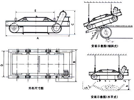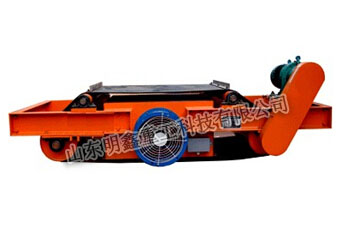 RCDC系列風(fēng)冷自卸式電磁除鐵器,是在RCDA系列除鐵器的基礎(chǔ)上增加了驅(qū)動電機、滾筒、帶刮板的卸鐵膠帶等組成的卸鐵機構(gòu)。在工作過程中卸鐵機構(gòu)自動將卸鐵皮帶吸附的鐵磁性物質(zhì)卸到集鐵箱內(nèi),無需停電人工清理,實現(xiàn)了除鐵自動化。